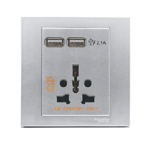 - Sản phẩm: KB42616USB_AS_G19: Bộ ổ cắm đa năng và sạc USB đôi, màu xám bạc