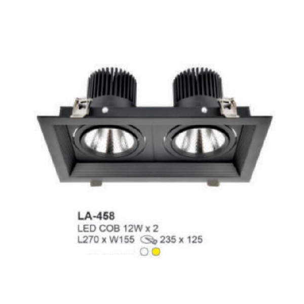 LA - 458: Đèn LED COB âm trần đôi 12W x 2, 1 chế độ ánh sáng ( trắng/vàng)
