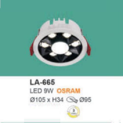 5. LA - 665: Đèn LED âm trần 9W, ánh sáng đổi 3 màu ( trắng - trung tính - vàng)