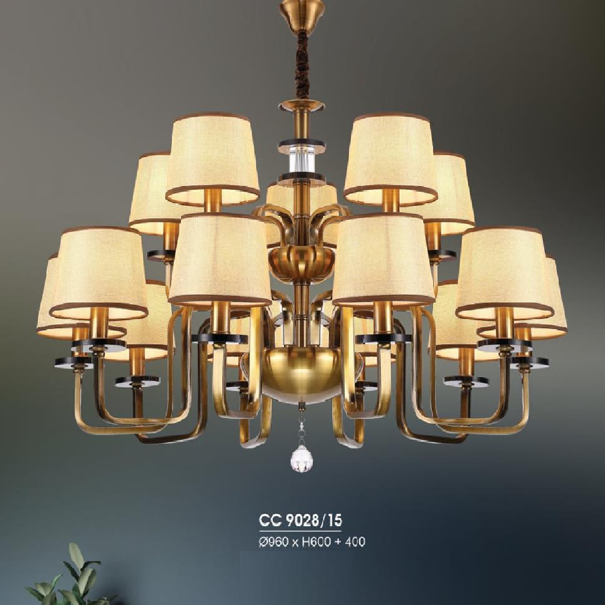 - Sản phẩm: HF - CC 9028/15: Đèn chùm 15 tay - KT: Ø960mm x H600mm + 400mm - Bóng đèn E14 x 15 bóng