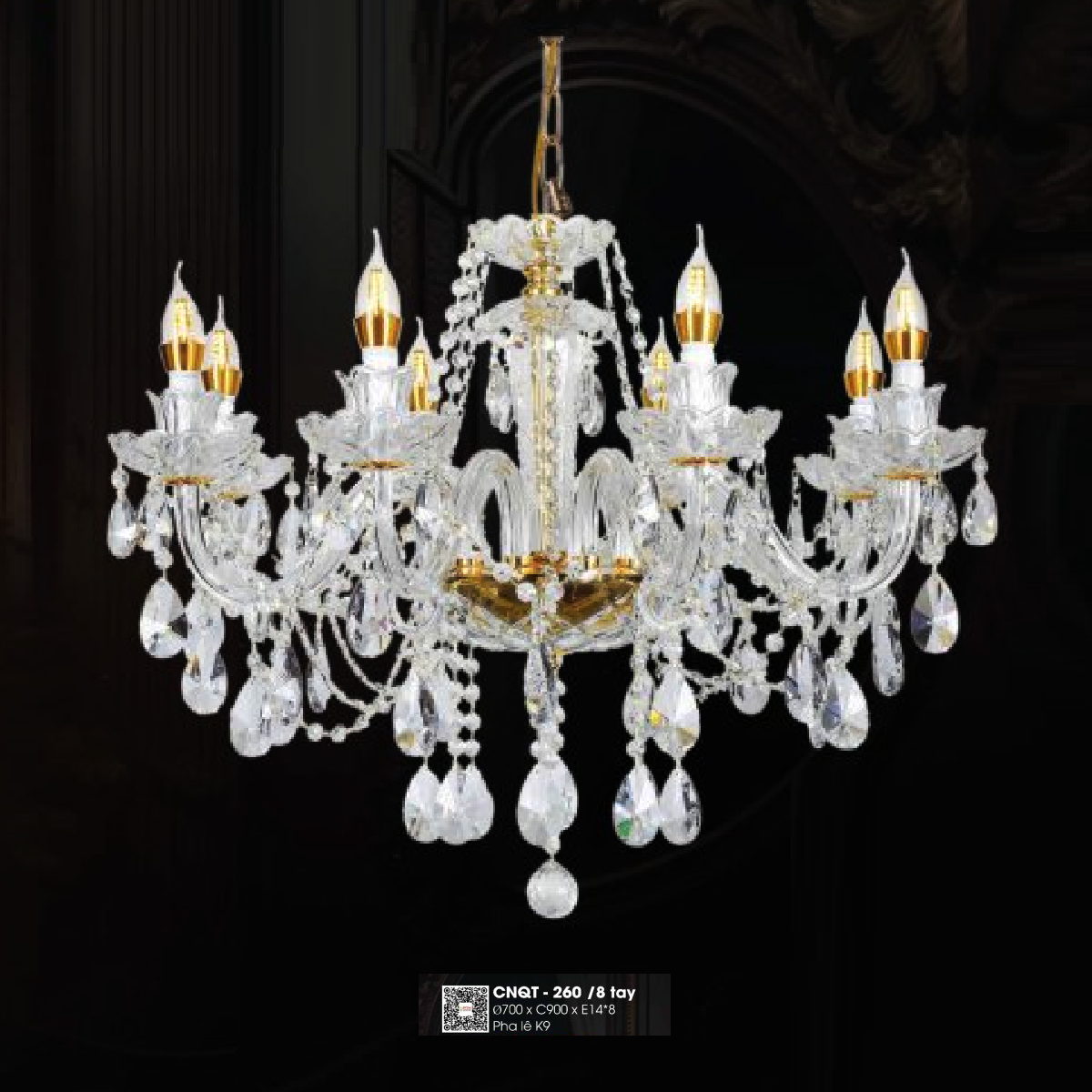 CNQT - 260/8tay: Đèn chùm nến 8 tay - KT: Ø700mm x H900mm - Bóng đèn nến chân E14 x 8 bóng
