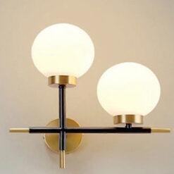 SN - VĐ 2041/2: Đèn vách đồng đôi, chao đá - KT: Ø380mm x H180mm - Đèn chân E14 x 2 bóng