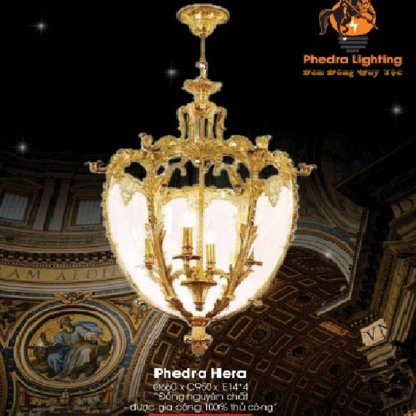 • Sản phẩm: LH - Phedra Hera: Đèn thả đồng ( chế tác thủ công) - KT: Ø660mm*H950mm - Đèn E14*4 bóng