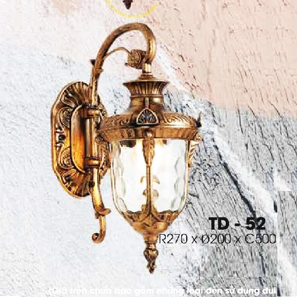 - Sản phẩm: TD - 52: Đèn gắn tường ngoài trời - KT: W270mm x H500mm - Bóng đèn E27 x 1