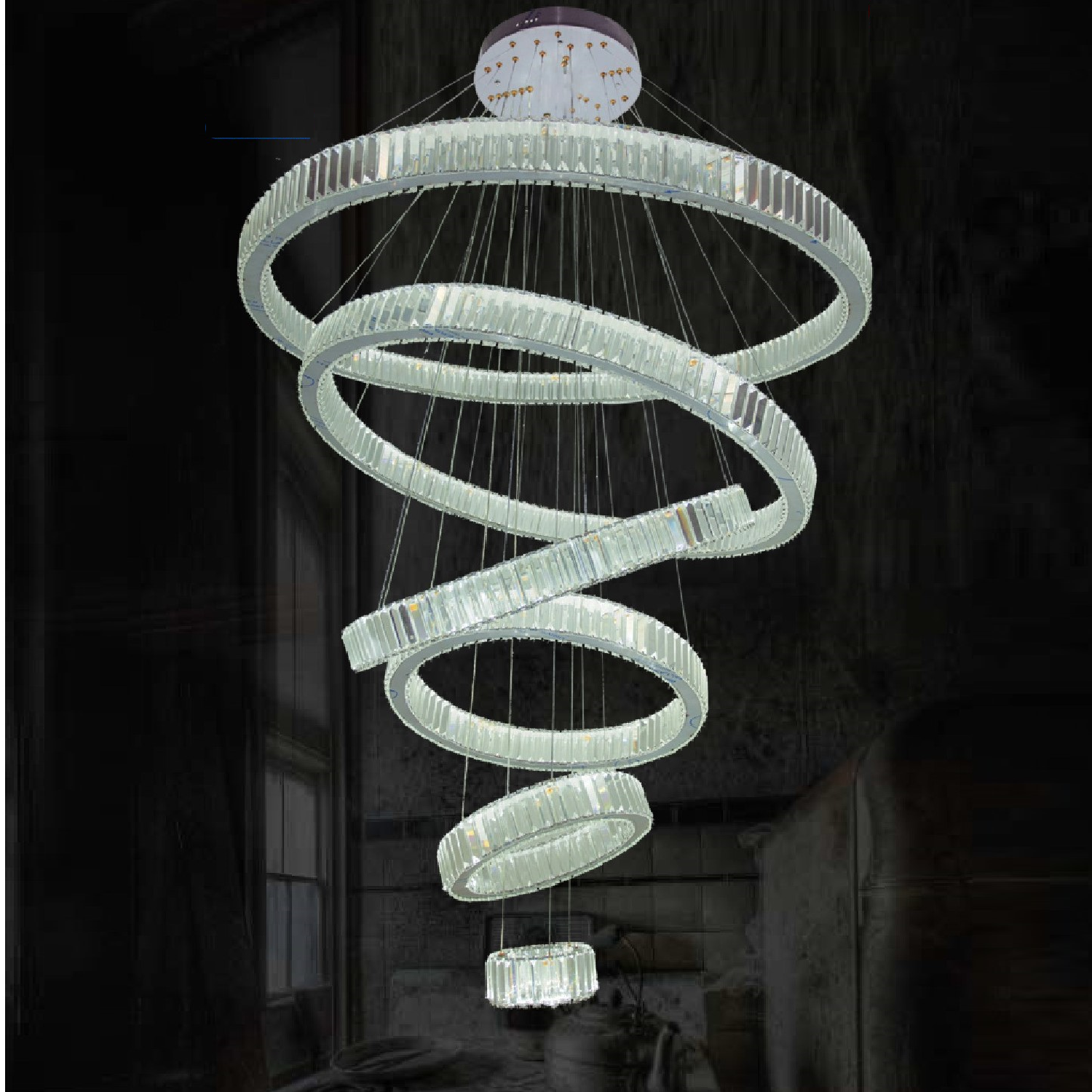 EU - TBA - 81: Đèn thả 5 vòng LED Phale K9 - KT: Ø(600 + 500+ 400+300+200)mm - Đèn LED đổi 3 màu