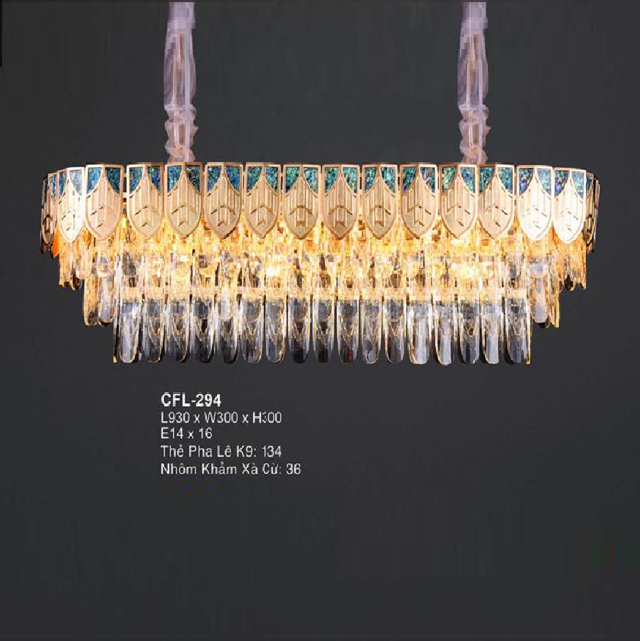 EU - CFL - 294: Đèn thả phale K9 chữ nhật - KT: L930mm x W300mm x H300mm - Đèn chân E14 x 16 bóng