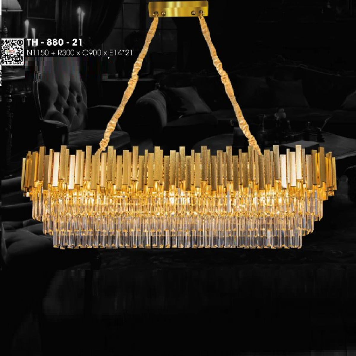 - Sản phẩm: TH - 880 - 21: Đèn thả Ngang Phale - KT: L1150mm x W300mm x H900mm - Đèn chân E14 x 12 bóng