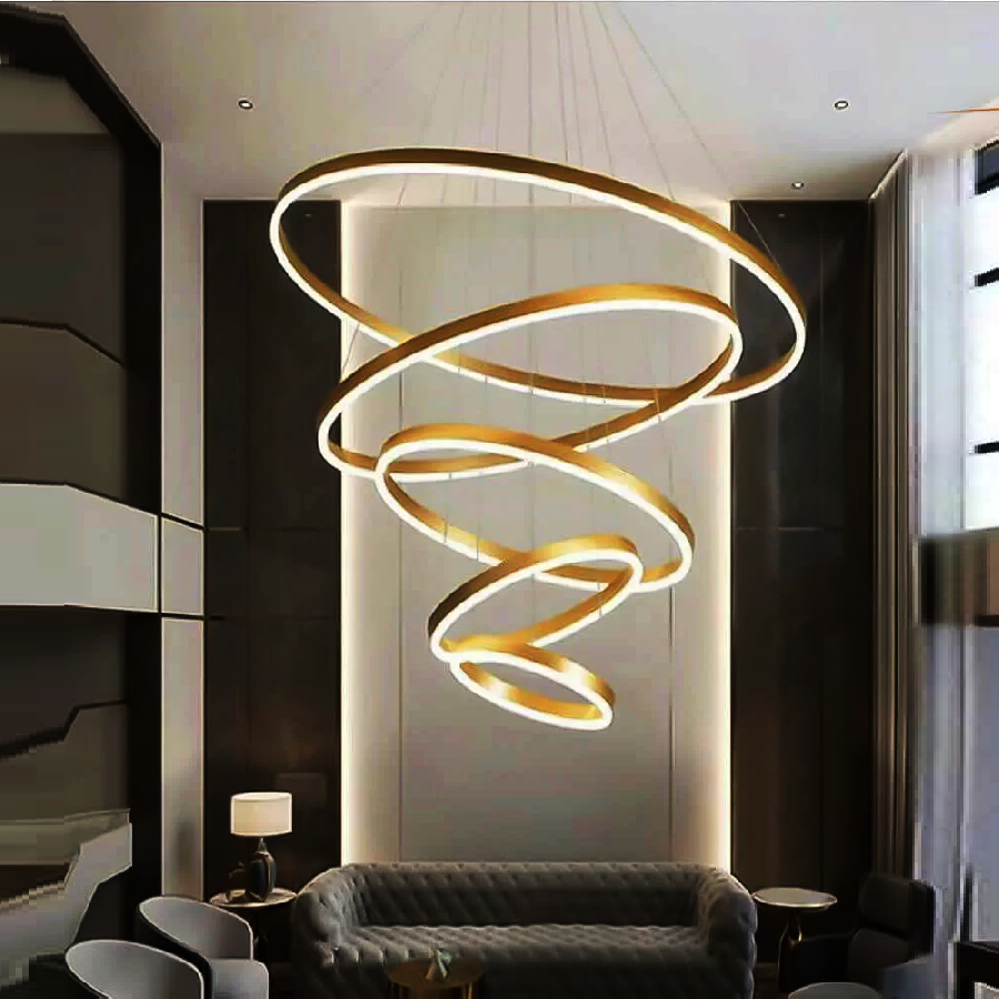 TH - 825 -23: Đèn thả 5 vòng LED xi màu vàng - KT: Ø(400+600 + 800+1000+1200)mm  - Đèn LED đổi 3 màu