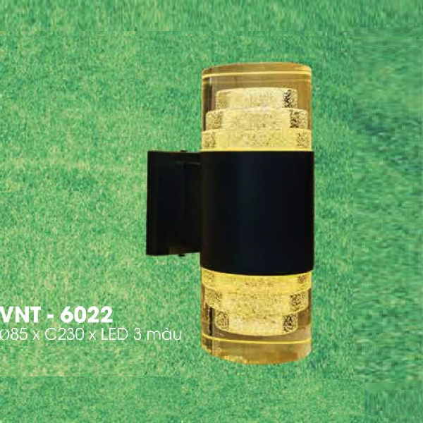 VNT - 6022: Đèn gắn tường ngoài trời - KT: Ø85mm x H230mm - Đèn LED ánh sáng đổi 3 màu