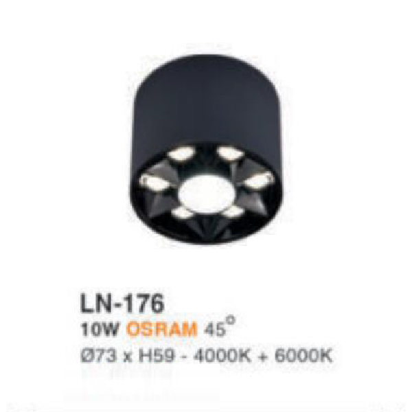 - Sản phẩm: LN - 176: Đèn lon LED 10W gắn nổi, ánh sáng trung tính+trắng