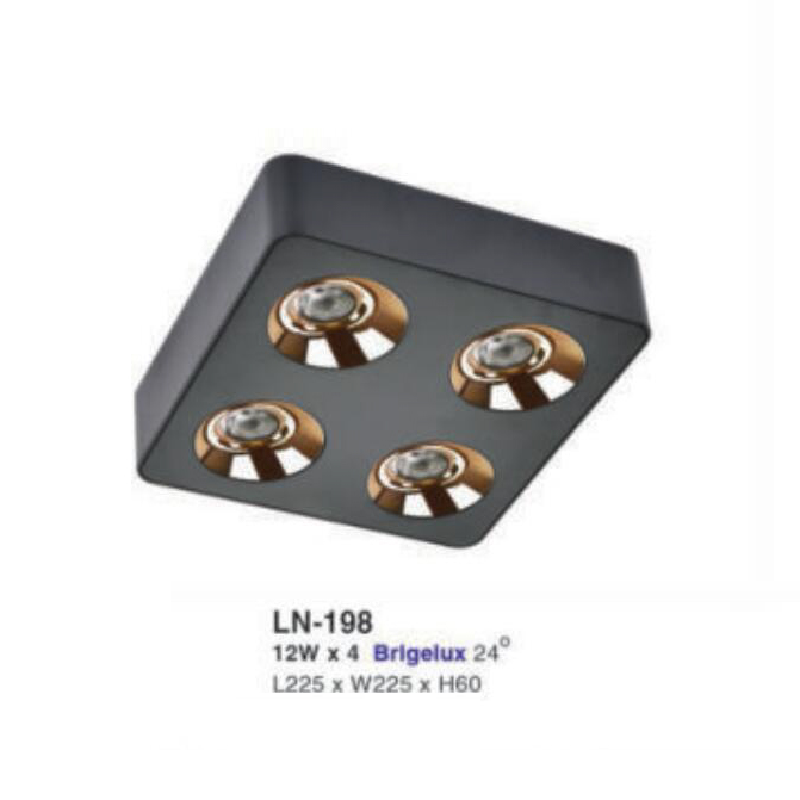 LN - 198: Đèn ốp trần 4 bóng gắn nổi LED 12W x 4, 1 chế độ ánh sáng ( vàng/trung tính/trắng)