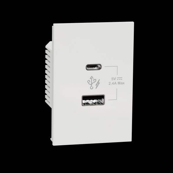 4. M3T_USB2_WE: Ổ cắm sạc đôi USB type A+C, 2.4A, Size 2S