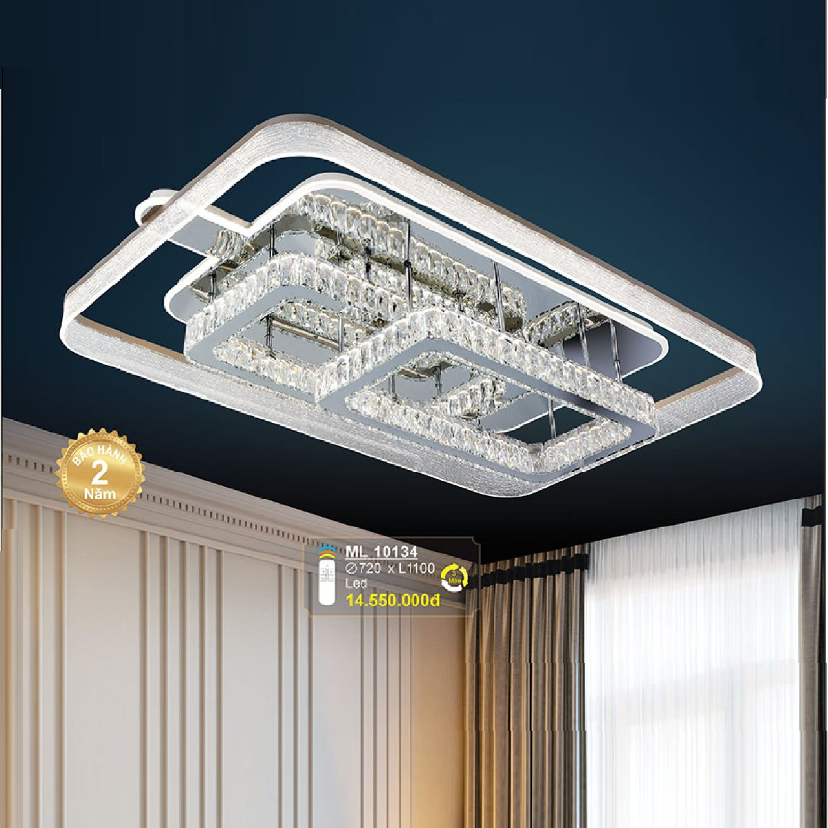 - Sản phẩm: ML 10314: Đèn mâm LED - KT: W720mm x L1100mm - Đèn LED đổi 3 màu