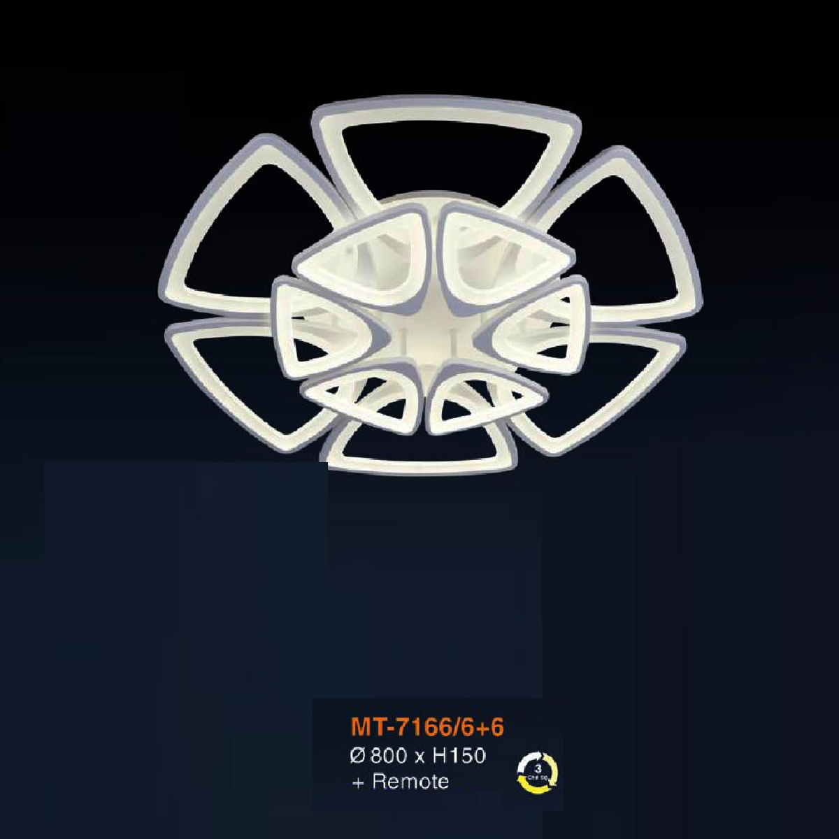 - Sản phẩm: MT - 7166/6+6: Đèn áp trần LED Mica 12 cánh - KT: Ø800mm x H150mm - Đèn LED đổi 3 màu + Remote