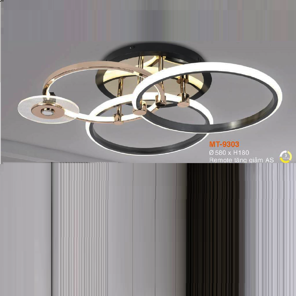 - Sản phẩm: MT - 9303: Đèn áp trần LED Mica - KT: Ø580mm x H180mm - Đèn LED đổi 3 màu + Remote
