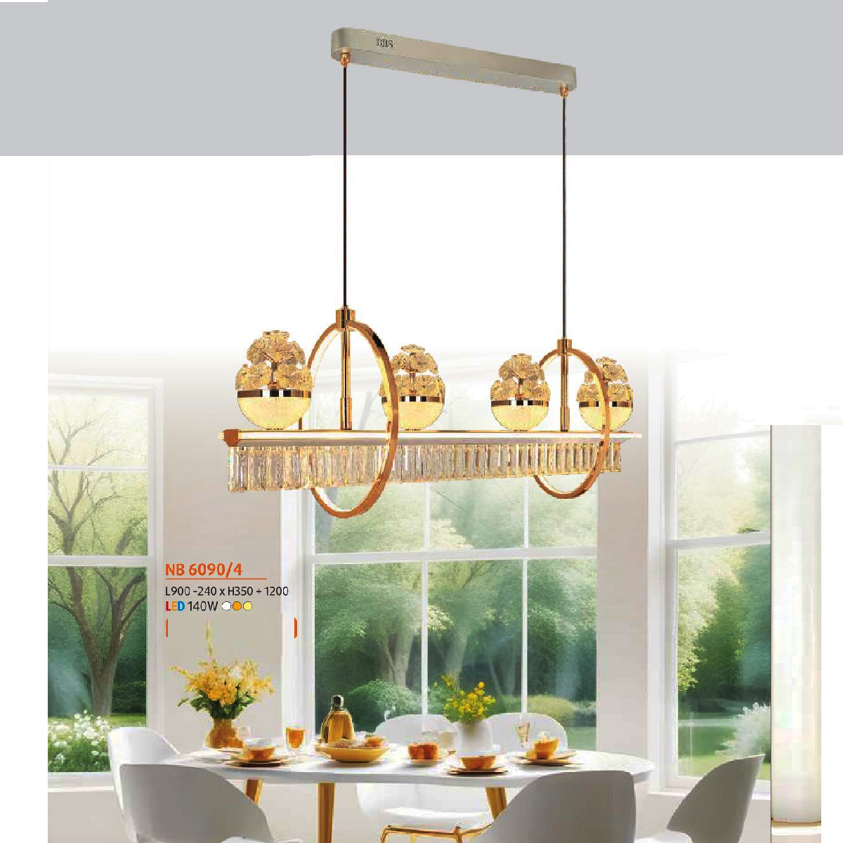 NB 6090/4: Đèn thả ngang LED 4 tay - KT: L900mm -240mm x H350mm +1200mm -  Đèn LED 140W ánh sáng đổi 3 màu