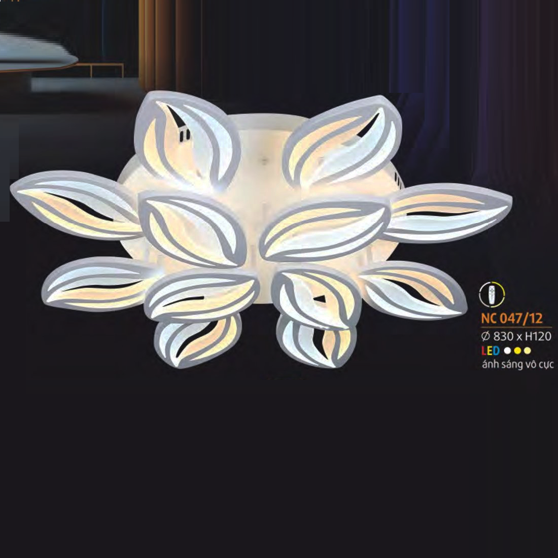 - Sản phẩm: NC 047/12: Đèn áp trần LED Mica 12 cánh - KT: Ø830mm x H120mm - Đèn LED đổi 3 màu - Remote