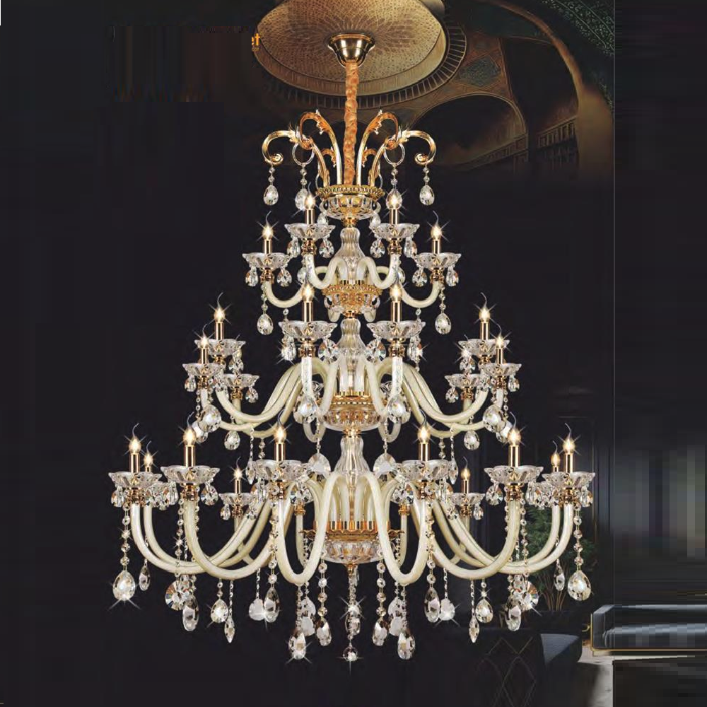 HF - 1766/32+24+18+12+6: Đèn chùm nến chao đá 92 tay - KT: Ø3000mm  x H3000mm +400mm - Bóng đèn nến E14 x 96 bóng