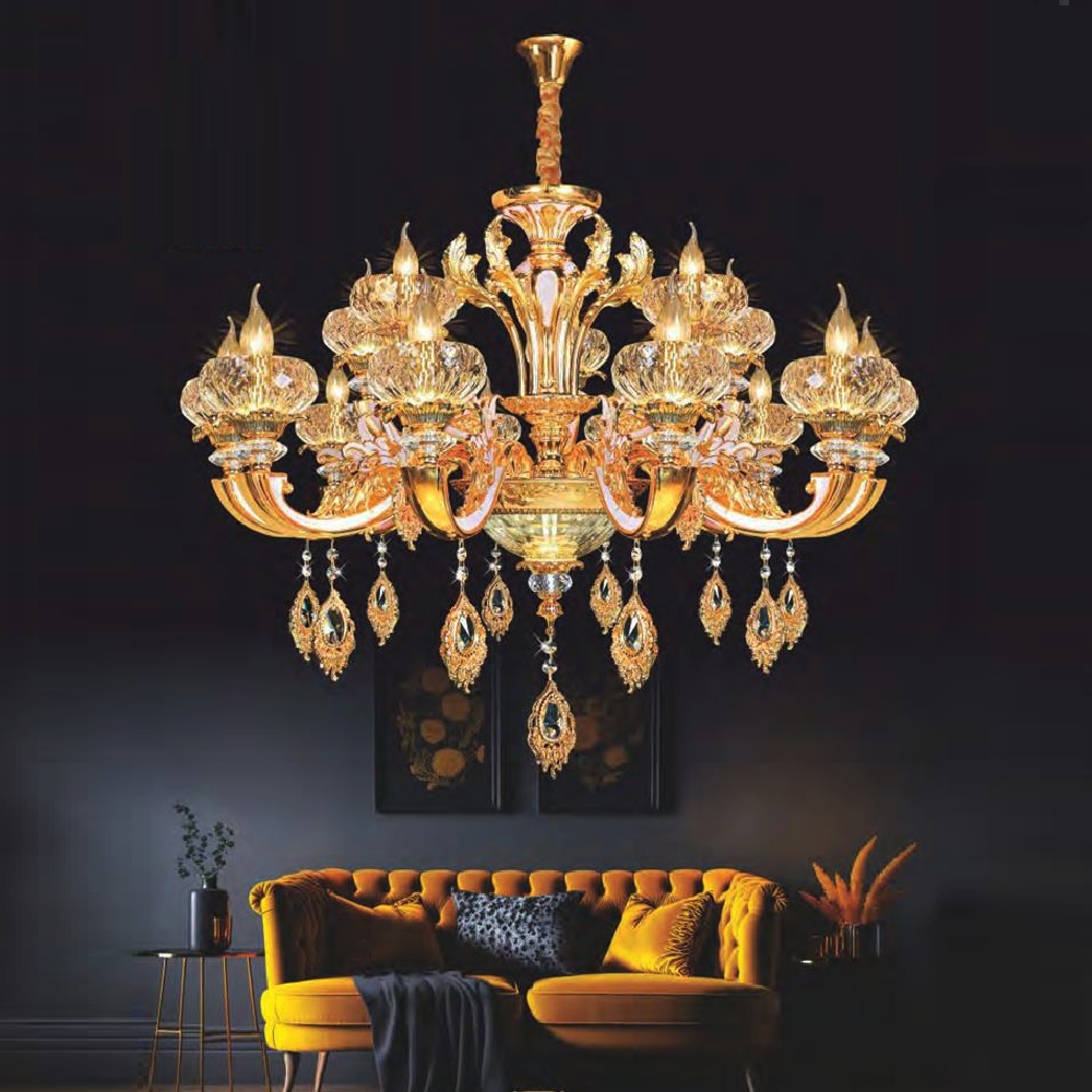 35 - DC9047T12: Đèn chùm nến phale K9 12 tay - KT: Ø960mm x H1500mm - Bóng đèn E14 x 18 bóng