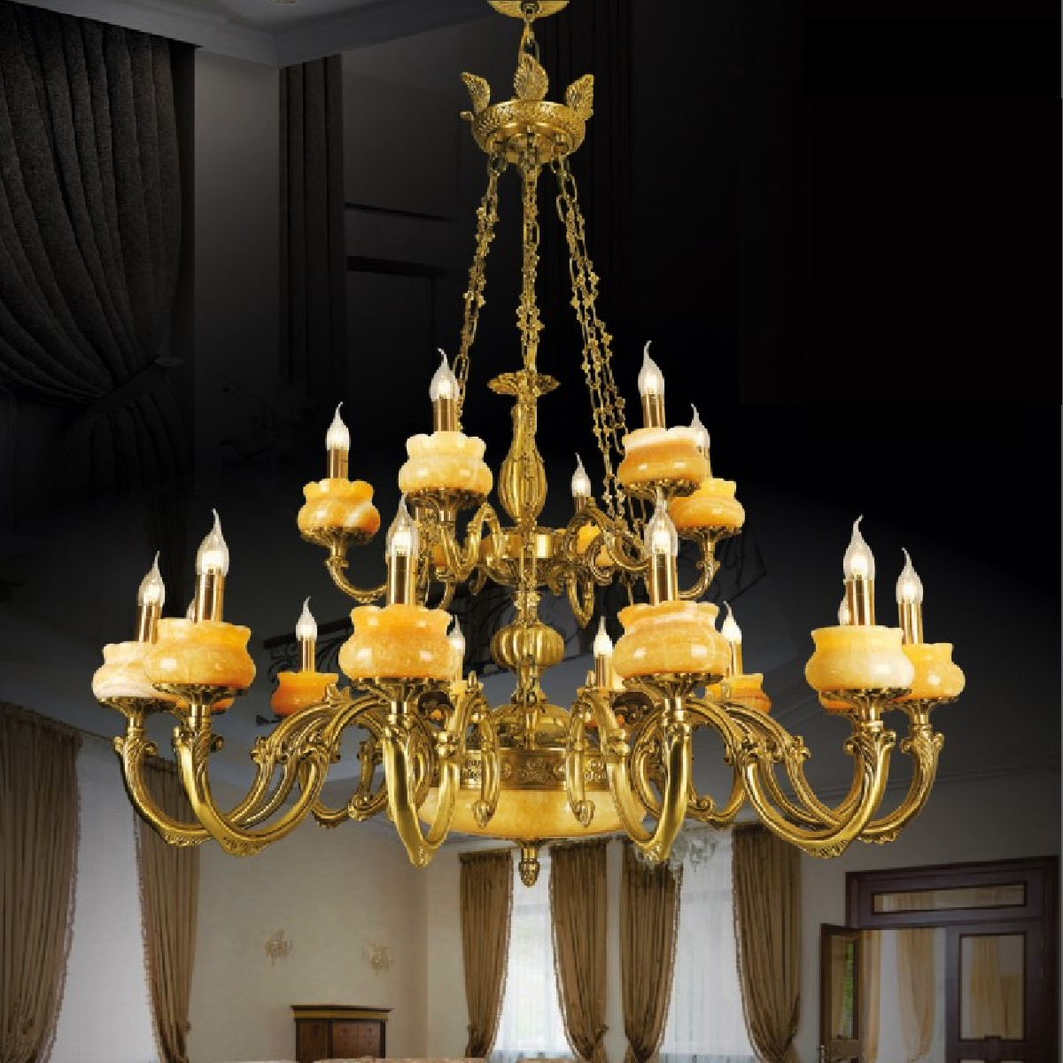 • Sản phẩm: S - CĐ 2024/12+6: Chùm đồng 18 tay, chao đá thiên nhiên - KT: Ø1200mm x H1250mm - Bóng đèn chân E14 x 18 bóng