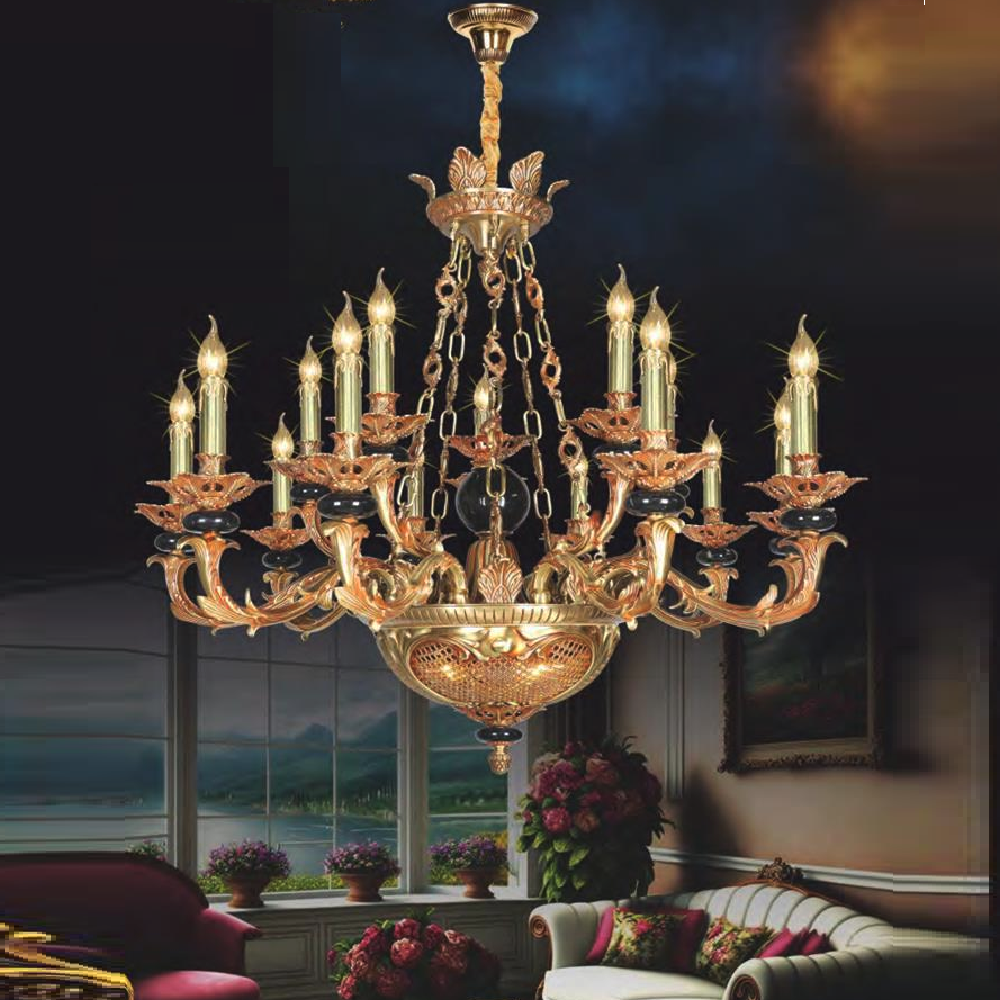 E - CD 765/16: Chùm đồng 18 tay  - KT: Ø750mm x H750mm - Bóng đèn chân E14 x 16 bóng