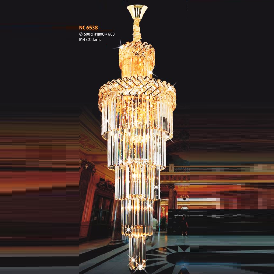 • Sản phẩm: NV - NC 6538: Đèn thả phale - KT: Ø600mm x H1800mm + 600mm - Đèn E14 x 24 bóng