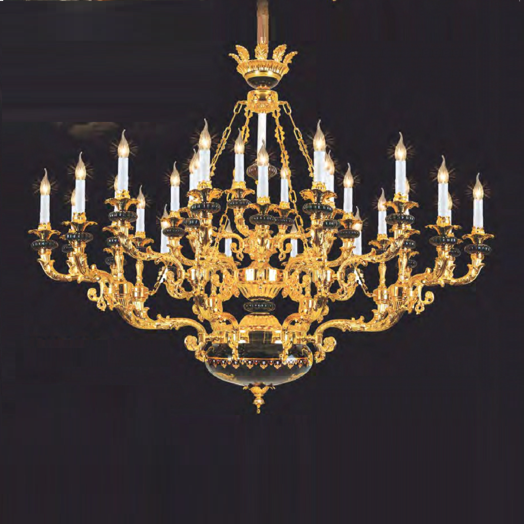 - Chất liệu: Thân đèn hợp kim mạ màu vàng 24K.