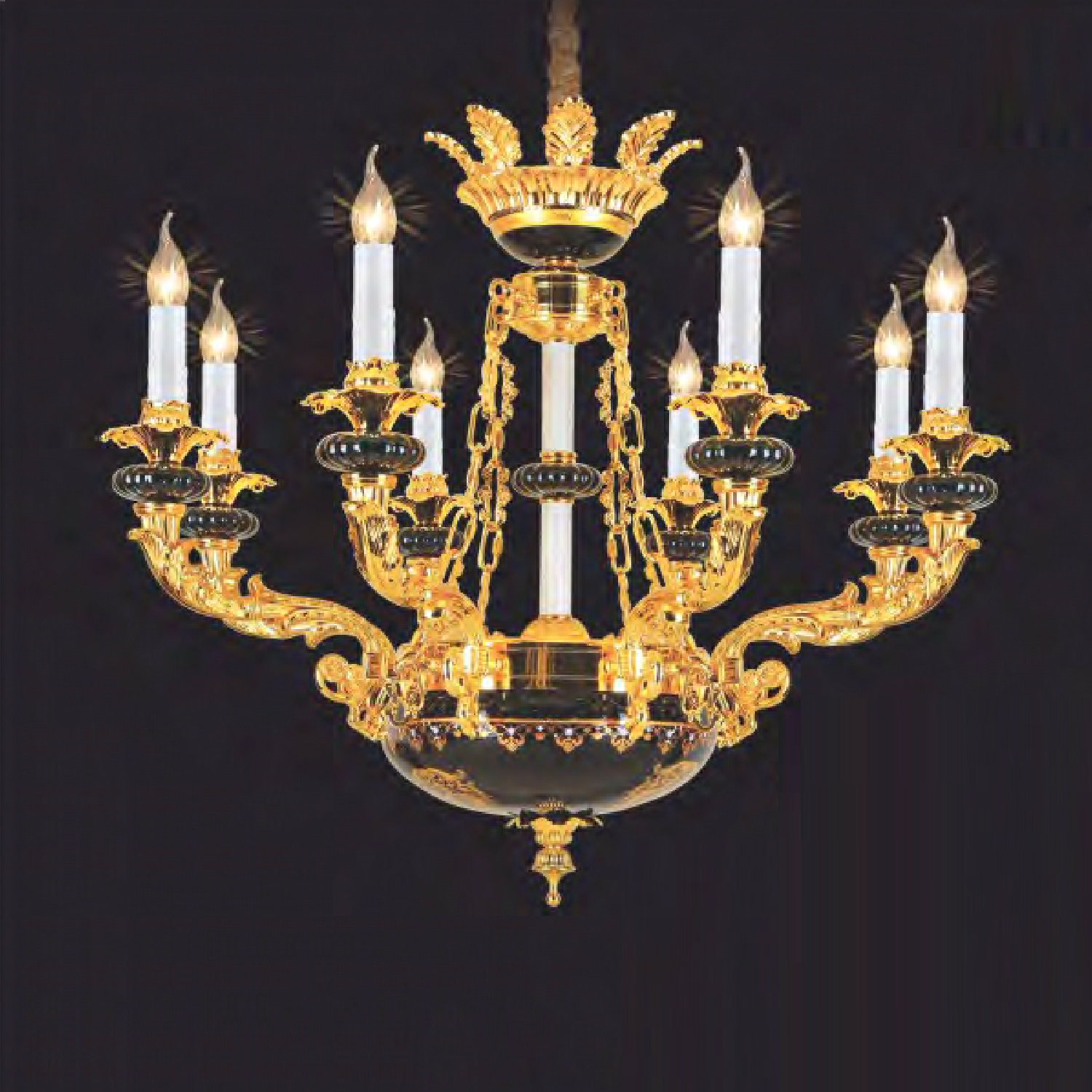 • Chất liệu: Thân đèn hợp kim mạ màu vàng 24K.