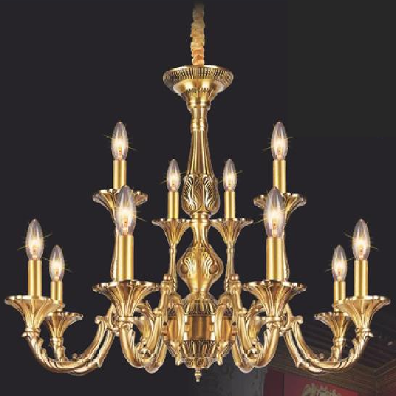 • Sản phẩm: NC 740/8+4: Đèn chùm đồng 12 tay - KT: Ø780mm x H 570mm + 500mm - Bóng đèn chân E14 x 12 bóng