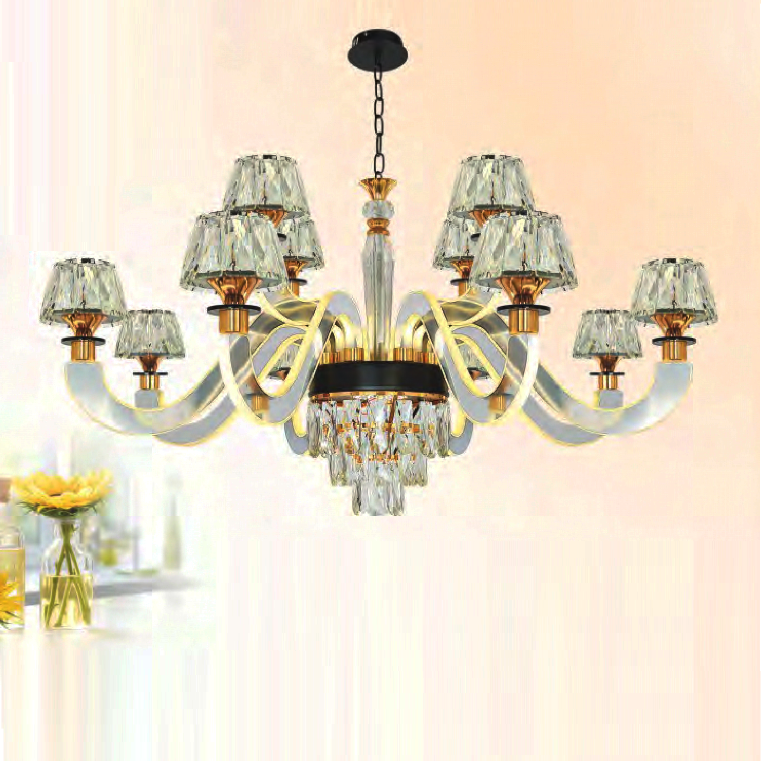 • Sản phẩm: NC 8813/8+4: Đèn chùm LED 12 tay - KT: Ø1000mm x H450mm + 400mm - Đèn LED 160W đổi 3 màu