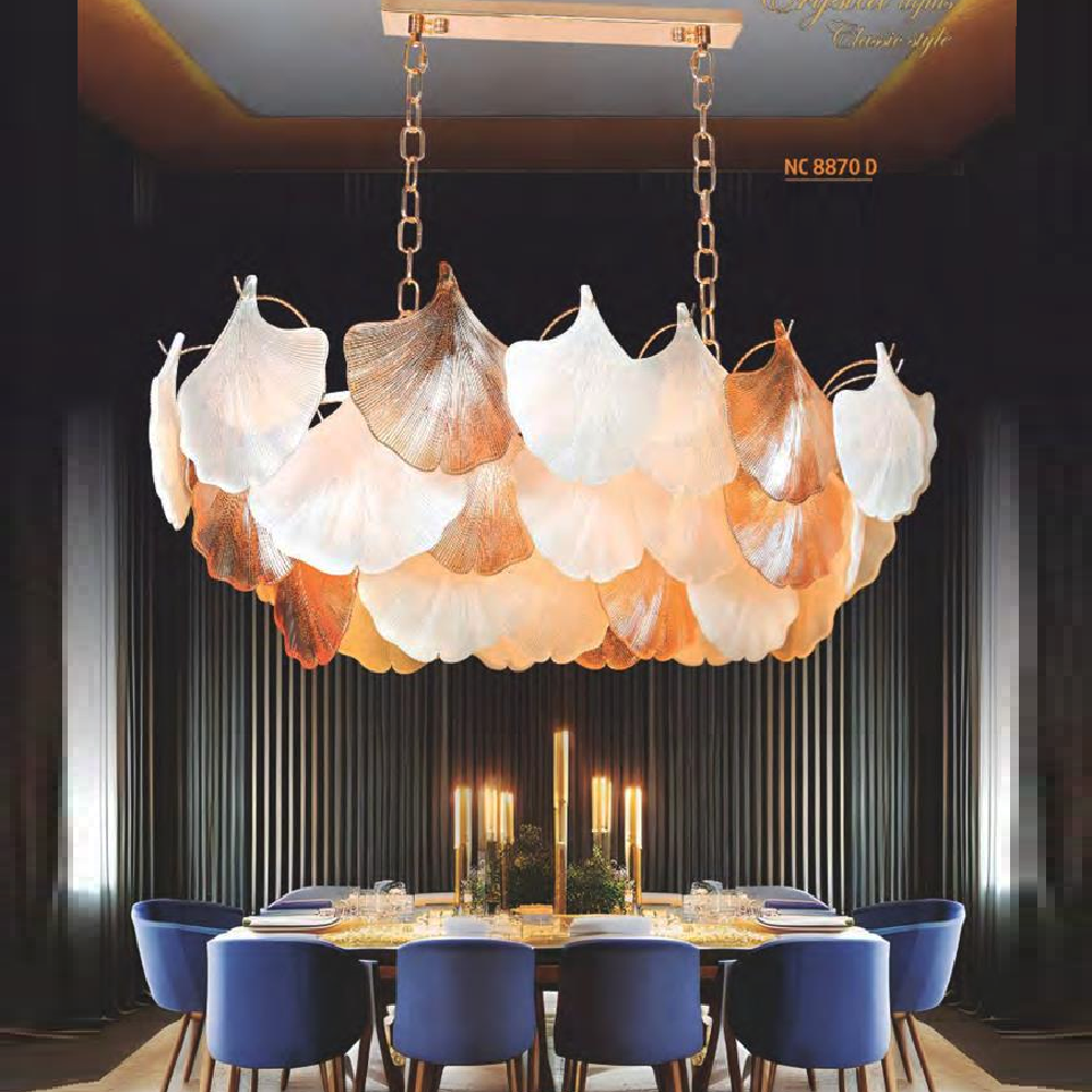 NC 8870D: Đèn thả Ngang Phale - KT: L900mm x W400mm x H350mm +700mm - Bóng đèn E14 x 12 bóng