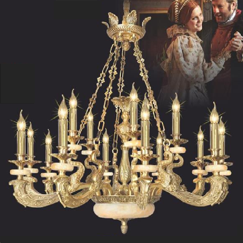 E - CD 765/16: Chùm đồng 18 tay  - KT: Ø750mm x H750mm - Bóng đèn chân E14 x 16 bóng