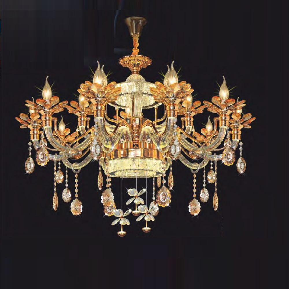 CNQT - 257: Đèn chùm nến  phale K9 15 tay - KT: Ø950mm x H1100mm - Bóng đèn nến chân E14 x 15 bóng
