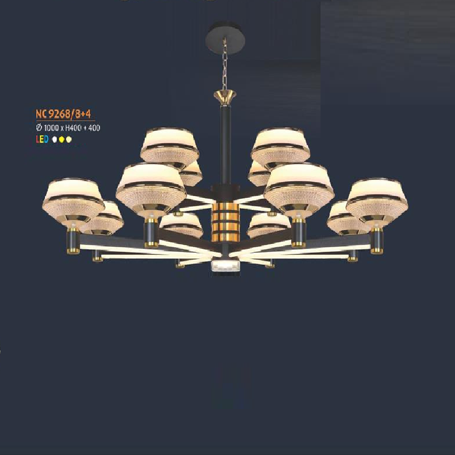- Sản phẩm: NC 9268/8+4: Đèn chùm LED 12 tay - KT: Ø1000mm x H400mm + 400mm - Đèn LED đổi 3 màu