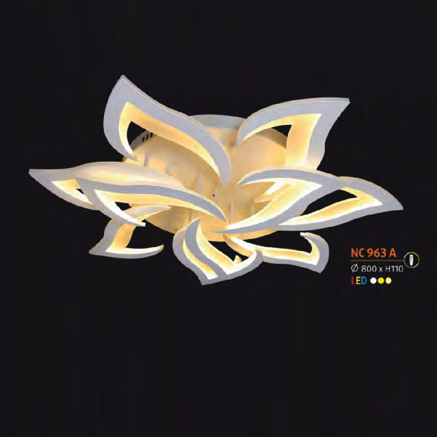 - Sản phẩm: NC 963A: Đèn áp trần LED Mica - KT: Ø800mm x H110mm - Đèn LED đổi 3 màu - Remote