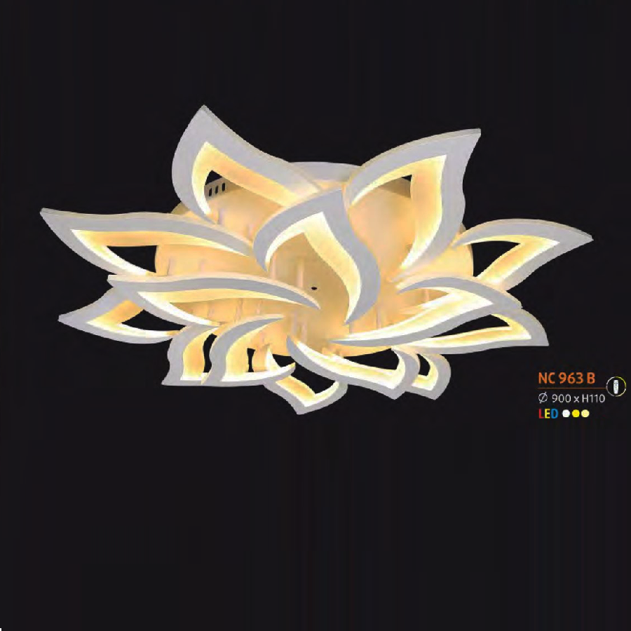 - Sản phẩm: NC 963B: Đèn áp trần LED Mica - KT: Ø900mm x H110mm - Đèn LED đổi 3 màu - Remote
