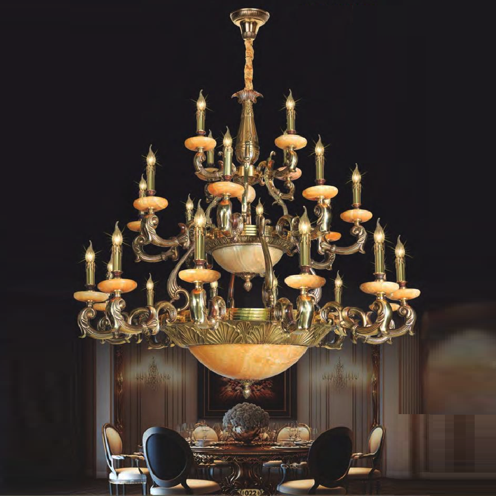 • Sản phẩm: NC 988/12+8+4: Đèn chùm đồng, chao đá 24 tay - KT: Ø1150mm x H1100mm +600mm - Bóng đèn E14 x 24 bóng +E27 x 6 bóng