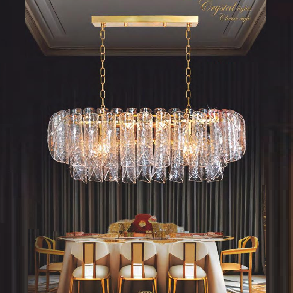 TH - 8220: Đèn thả ngang phale K9 - KT: L800mm x W300mm  x H1000mm - Đèn E14 x10 bóng