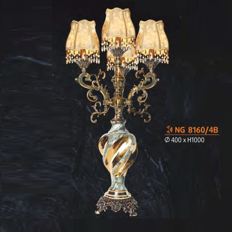 - Sản phẩm: NG 8160/4B: Đèn đầu giường 4 bóng chao vải - KT: Ø400mm x H1000 - Bóng đèn E14 x 4 bóng
