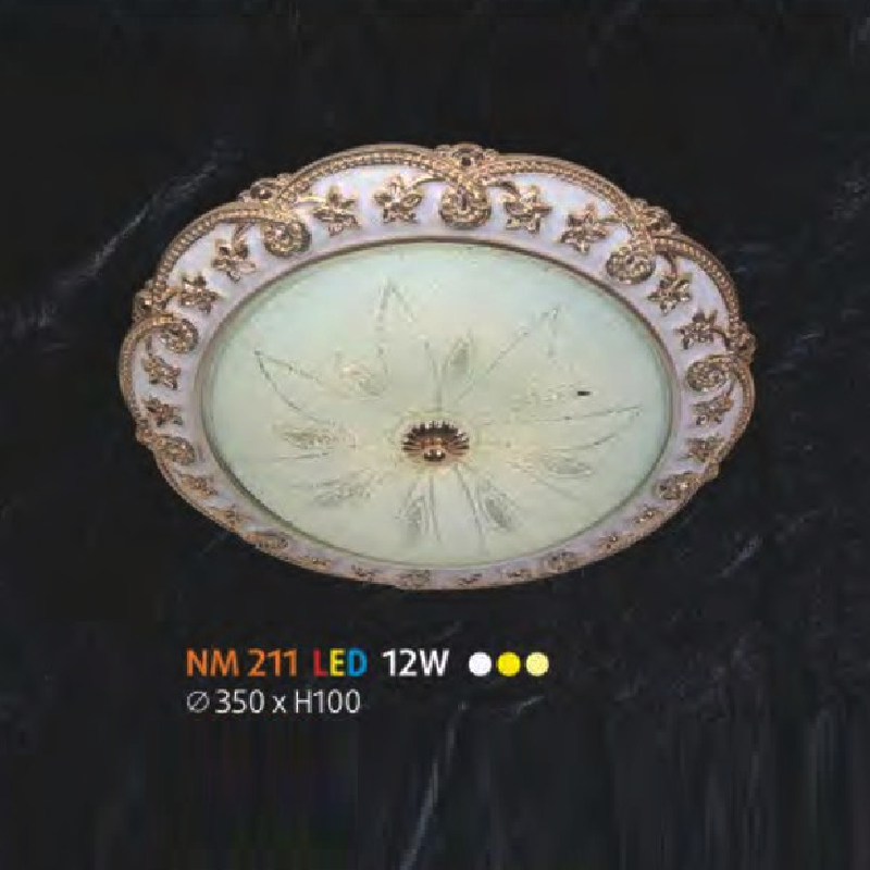 - Sản phẩm: NM 211 LED: Đèn ốp trần LED chao thủy tinh - KT: Ø350mm x H100mm - Đèn LED 12W đổi 3 màu