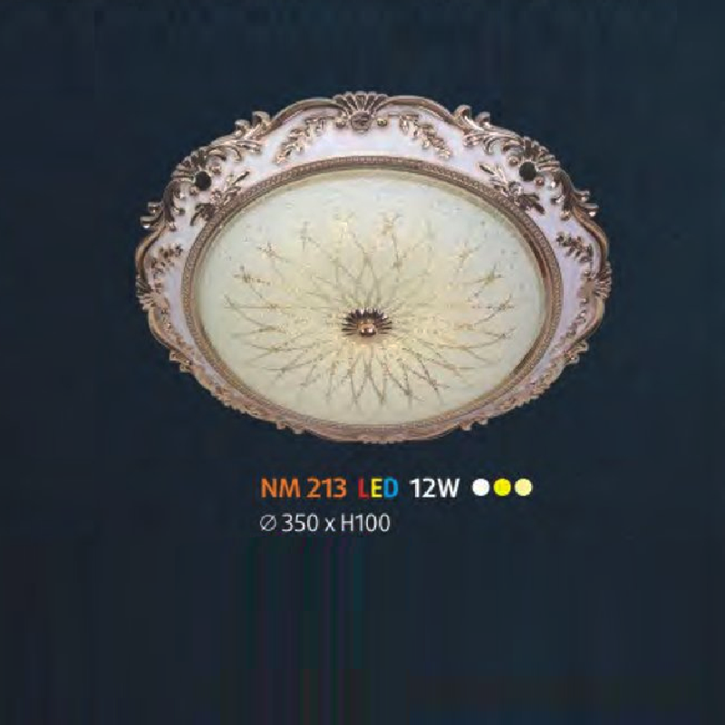 NM 213 LED: Đèn ốp trần LED chao thủy tinh - KT: Ø350mm x H100mm - Đèn LED 12W đổi 3 màu