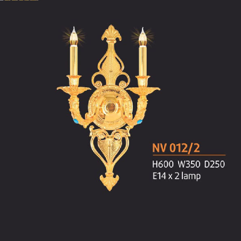 - Sản phẩm: NV 012/2: Đèn gắn tường đồng đôi - KT: L250mm x W350mm x H600mm - Bóng đèn E14 x 2 bóng