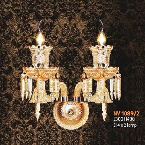 • Sản phẩm: NV 1089/2: Đèn vách nến đôi chao thủy tinh - KT: L300mm x H400mm - Đèn chân E14 x 2 bóng