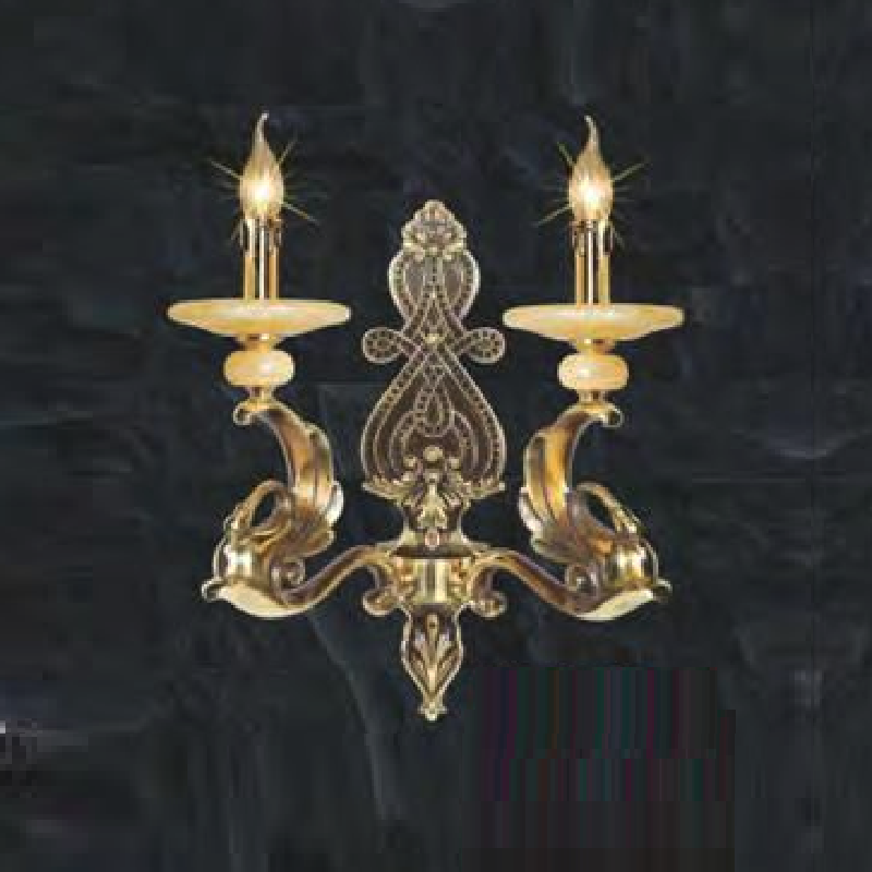 NV 1113/2: Đèn gắn tường đôi đồng chén đá - KT: L350 - 250mm x H430mm - Bóng đèn E14 x 2