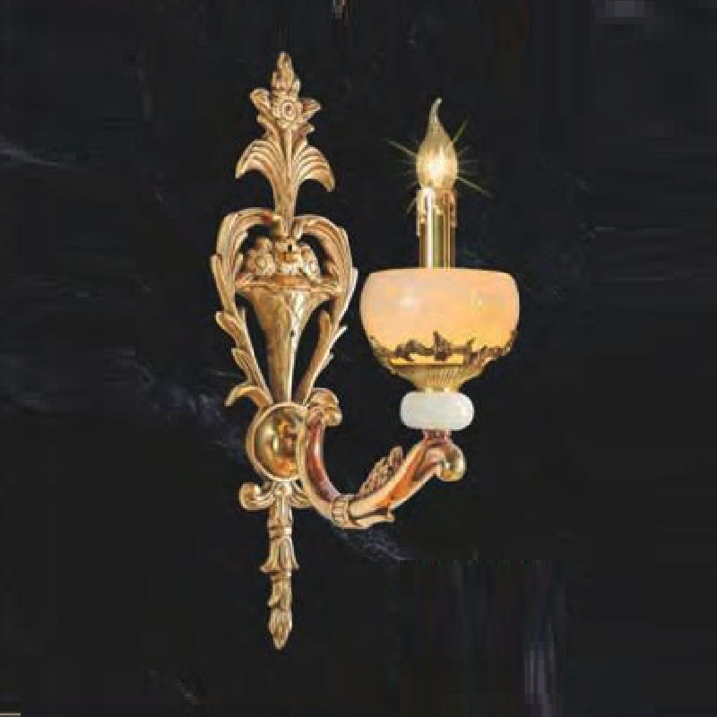 5. NV 6085/1: Đèn gắn tường đồng chao đá - KT: L260 mm x H450mm - Bóng đèn E14 x 1