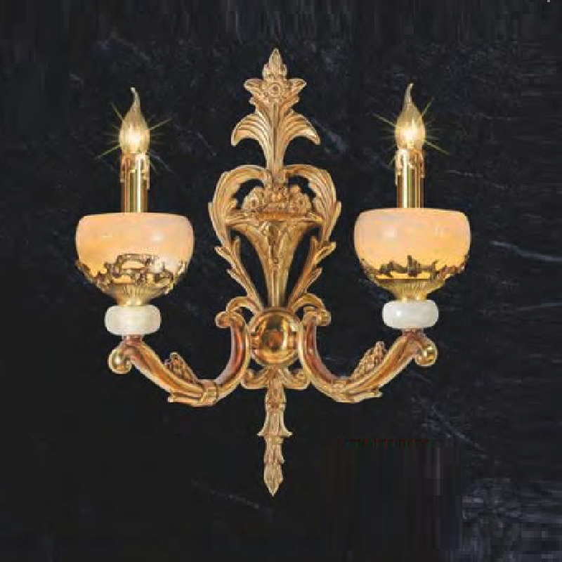 5. NV 6085/2: Đèn gắn tường đồng chao đá đôi - KT: L350 mm x H450mm - Bóng đèn E14 x 2