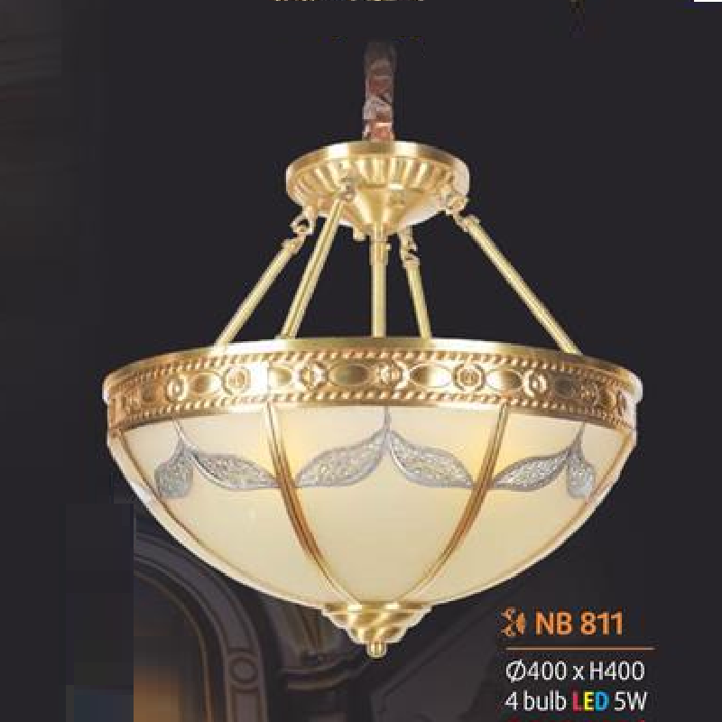• Sản phẩm: NV - NB 811: Đèn thả đồng - KT: Ø400mm x H400mm - LED 5W x 4 bóng