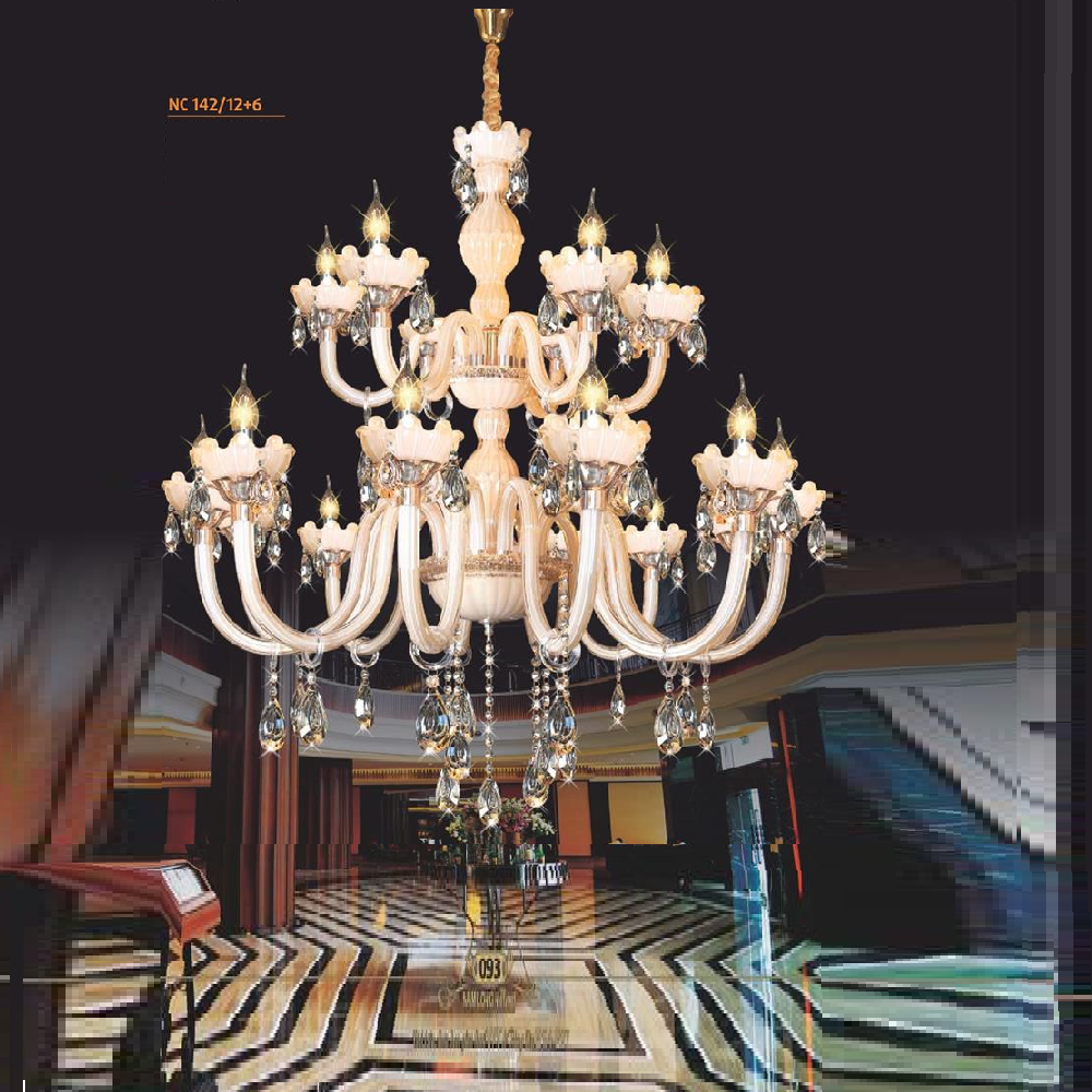 • Sản phẩm: NC 142/12+6: Đèn chùm nến 12 tay - KT: Ø950mm x H1000mm + 600mm - Đèn nến chân E14 x 18 bóng