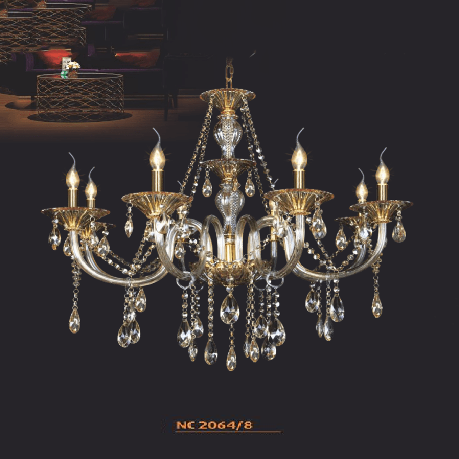 • Sản phẩm: NC 2064/8: Đèn chùm nến 8 tay - KT: Ø900mm x H700mm + 500mm - Đèn nến chân E14 x 8 bóng