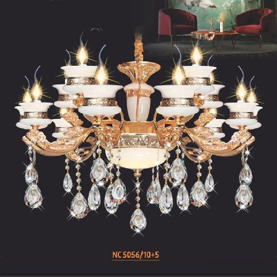 - Sản phẩm: NC 5056/10+5: Đèn chùm nến 15 tay - KT: Ø900mm x H600mm + 500mm - Đèn nến chân E14 x 15 bóng